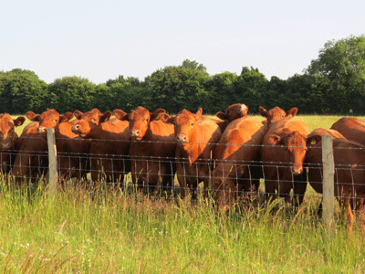 The Red Angus Herd![]() Our Red Angus herd was founded in 1998, using genetics from Leachman in Montana, USA. Since then we have used other sires to widen the genetic base of the herd, as the red version of the Angus breed has become more popular in the UK. The Red Angus is the foundation breed for many successful composite breeds worldwide, because it has been strongly selected for its commercial and maternal values; ie fertility and milkiness.